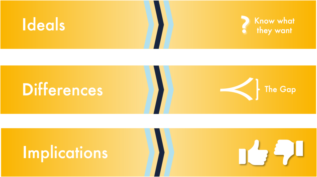 IMPLICATIONS: What are the negative implications of this shortfall/gap, what does it mean to them and what are the positive implications if they achieve their ideals?